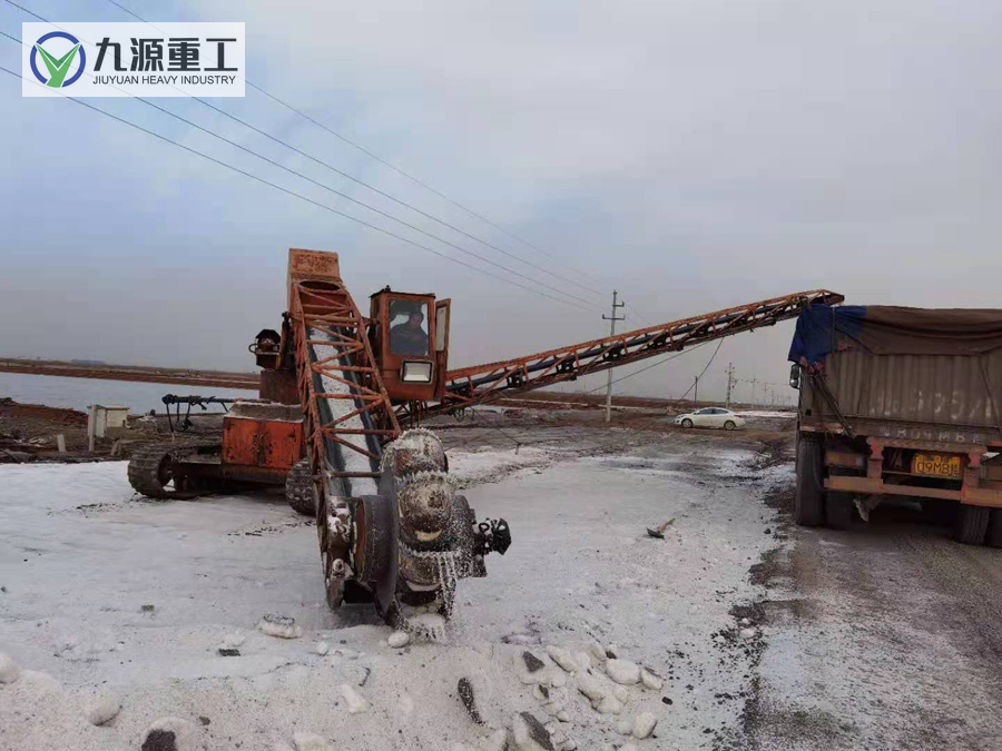 斗輪取料機,是指一種用于大型干散貨堆場的既能堆料又能取料的連續(xù)輸送的高效裝卸機械。由可俯仰和水平擺動的膠帶輸送臂及其前端的斗輪、機架、運行機構組成,膠帶可雙向運行,取料時由斗輪取料經(jīng)輸送臂送出,堆料時則由主輸送機運來的貨物經(jīng)由輸送臂投向堆場。